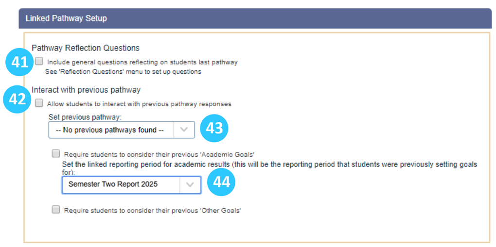 If students are to reflect on a previous pathway, the result period for their reflection results must be specified.