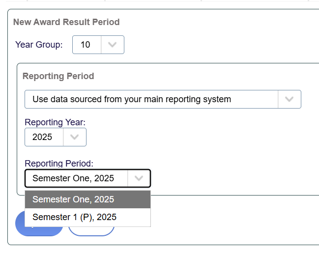 - Add 'New' reporting periods - select the appropriate reporting period/s.